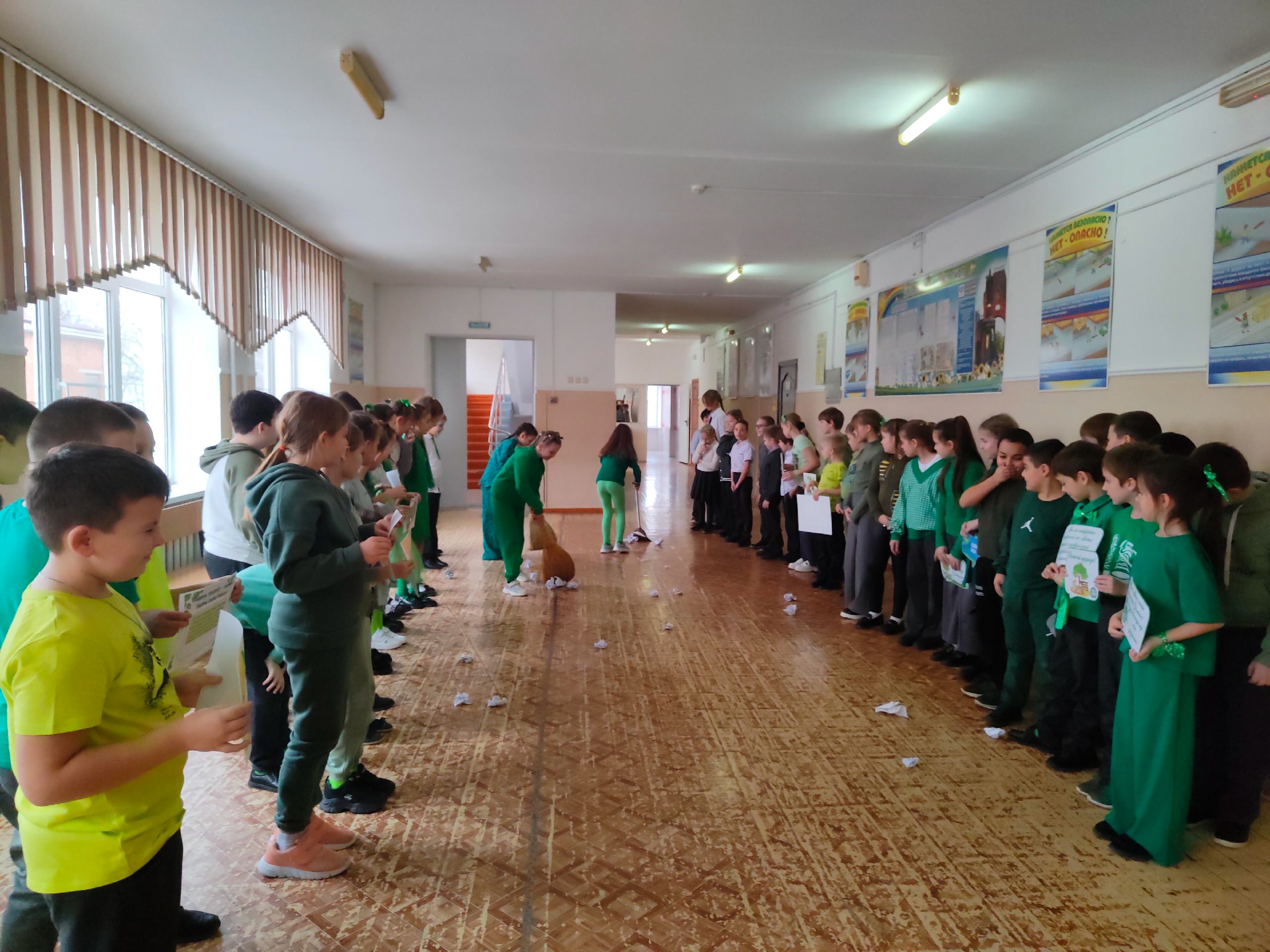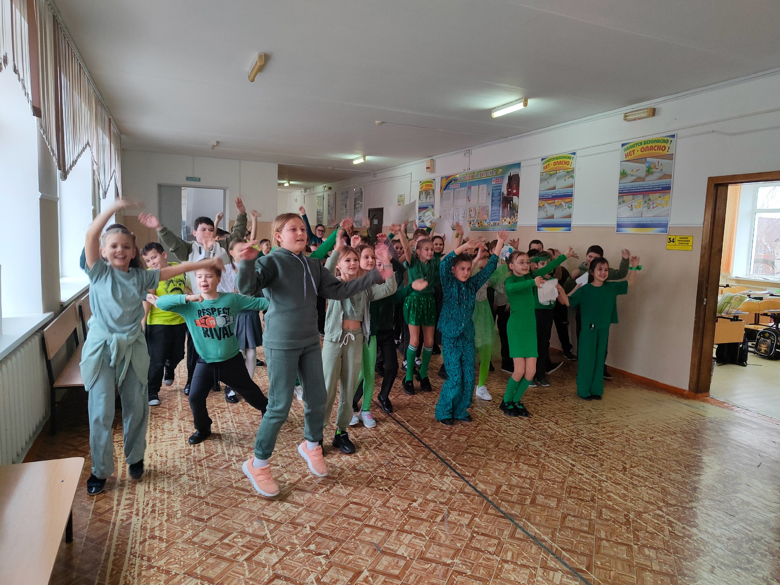 Ученики 3 "Б" и 3 "В" классов МАОУ СОШ №17 Славянского района провели яркий экологический флешмоб в рамках акции "Мы за зелёную планету".