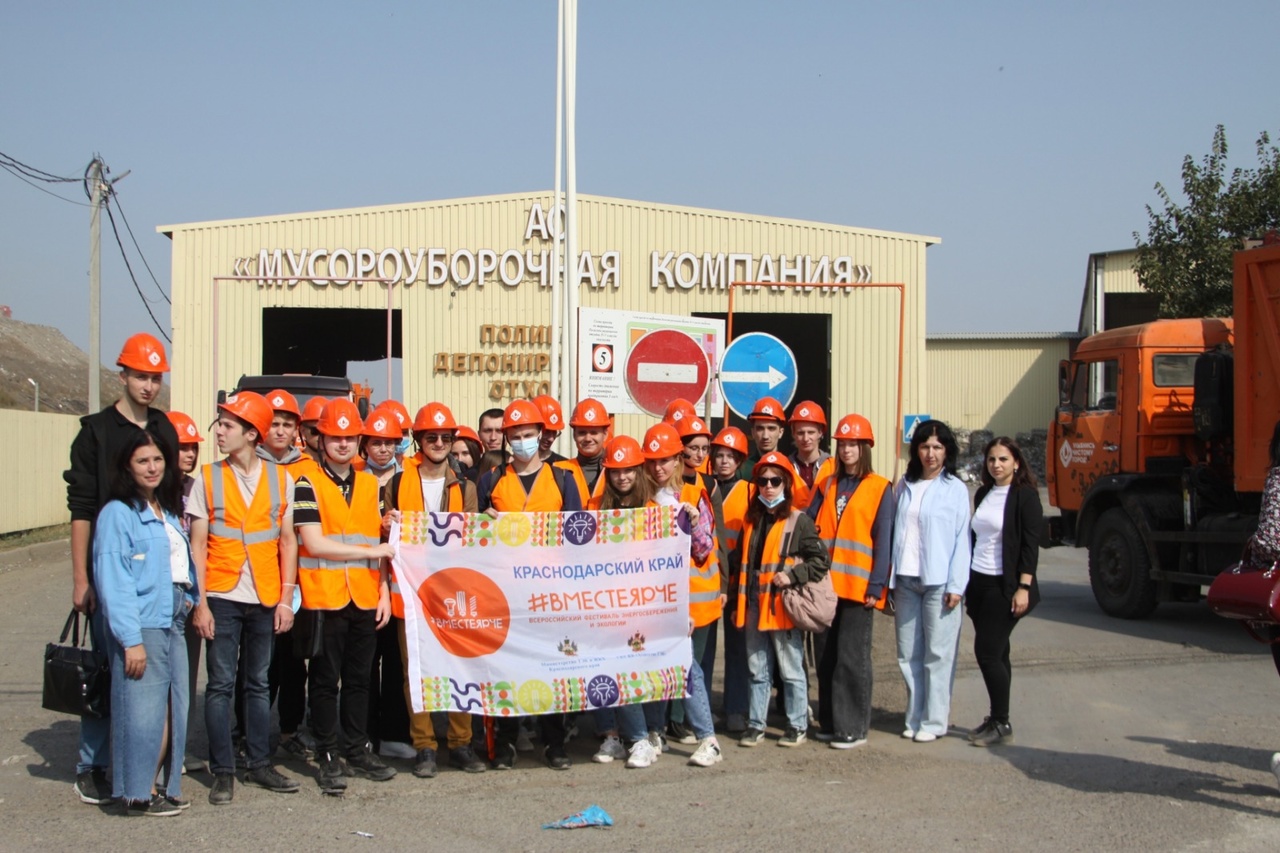 В рамках социальной кампании в поддержку Всероссийского фестиваля энергосбережения и экологии #ВместеЯрче состоялся экскурсионный выезд на полигон депонирования отходов АО «Мусороуборочная компания» вблизи хутора Копанского г. Краснодара. Участниками стали студенты 3-4 курса факультета агрономии и экологии по направлению «Экология и природопользование» ФГБОУ ВО «Кубанский государственный аграрный университет имени И. Т. Трубилина», организованный совместно с ГКУ КК «Агентство ТЭК».